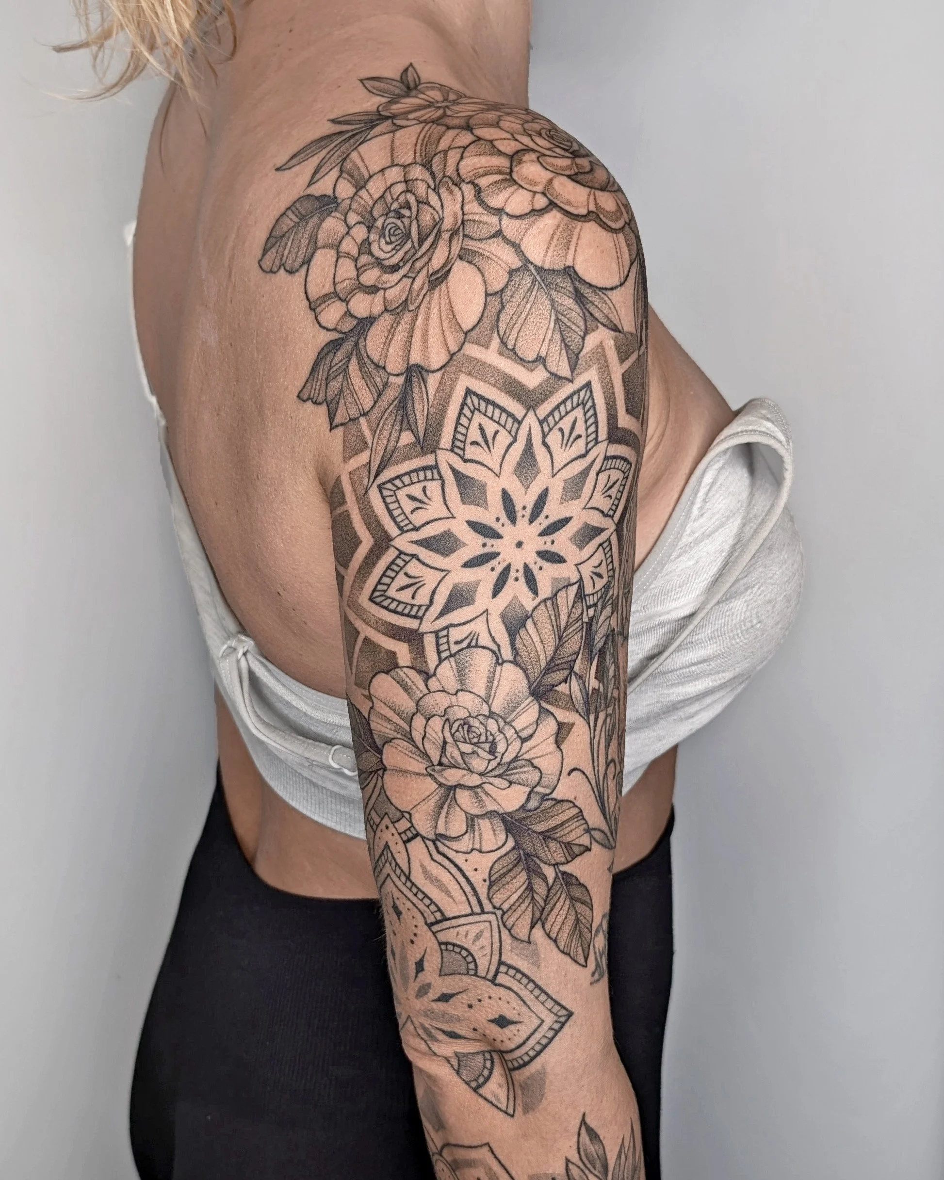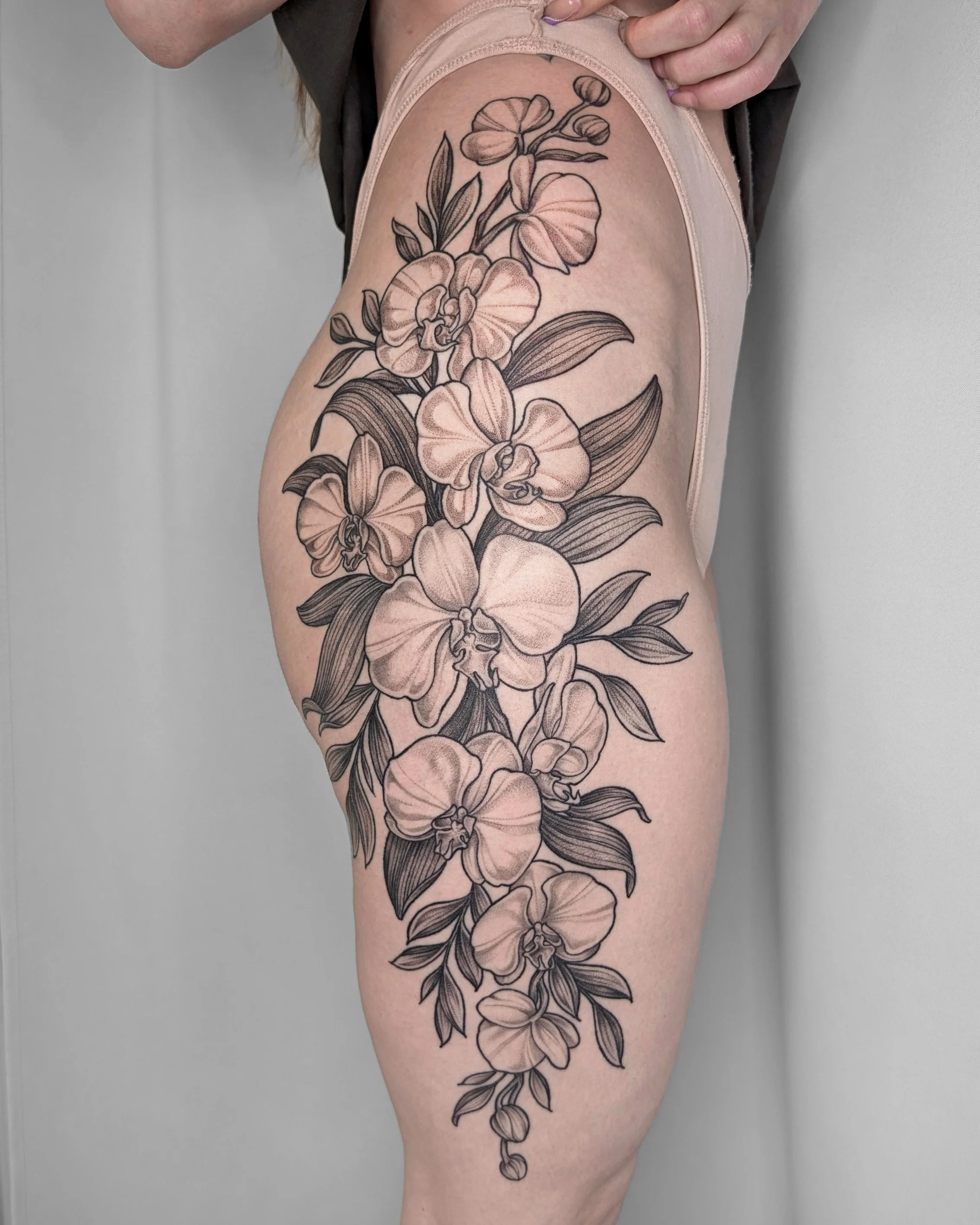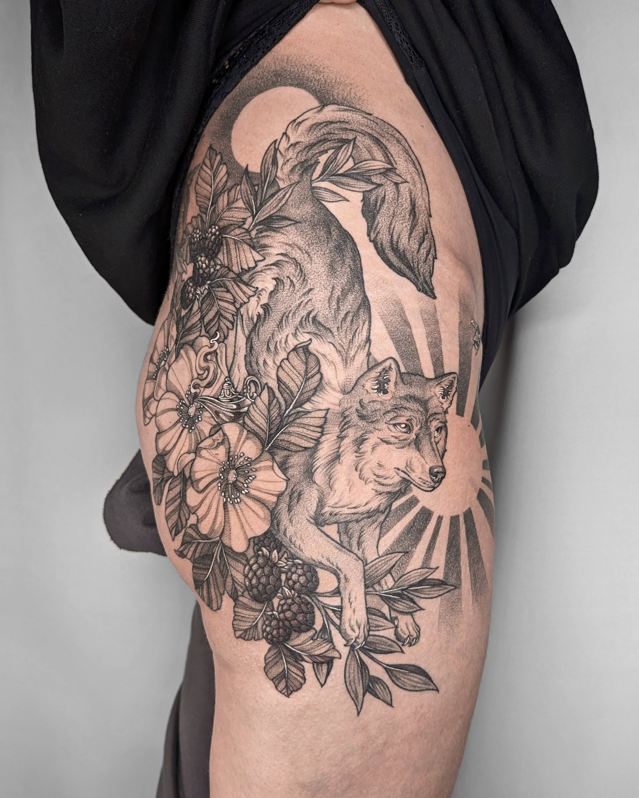 Hi! Ich bin Elina :) Ich komme ursprünglich aus Lettland, habe das Zeichnen schon immer geliebt und begann meine Karriere als Tätowiererin im Jahr 2017. Mein eigener Stil ist von neo-traditionellen Tätowierungen inspiriert und entwickelt sich ständig weiter. Ein Spiel zwischen dicken und dünnen Linien sowie etwas realistischen Schattierungen prägt meinen Stil. Am liebsten mache ich florale Motive, Tiere, Gesichter, Mandalas und Ornamente, bin aber auch für viele andere Themen offen. Ich lasse mich gerne von euch und euren Ideen und Geschichten inspirieren.